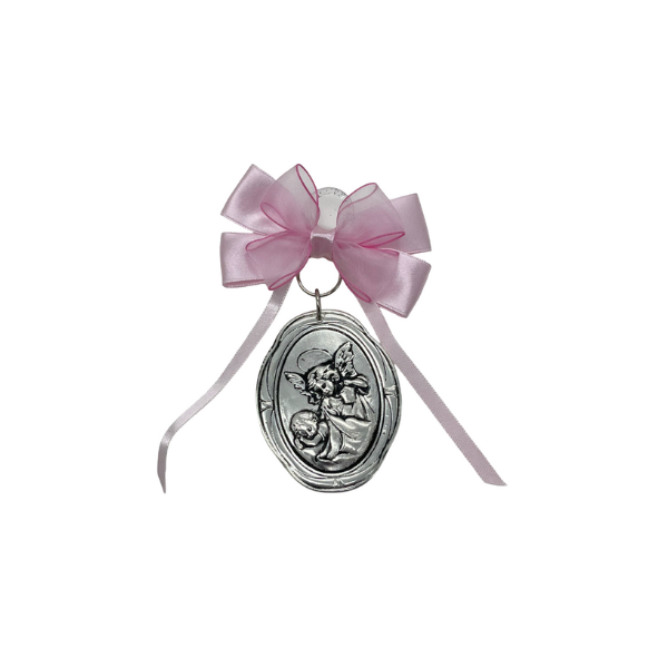 Ángel de la Guarda Oval Cinta Rosa- Plaqué