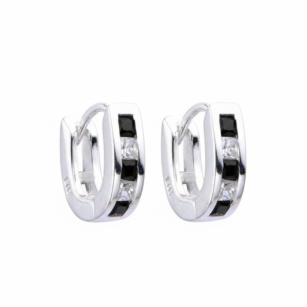 Aretes Aro Circones Negros- Plata