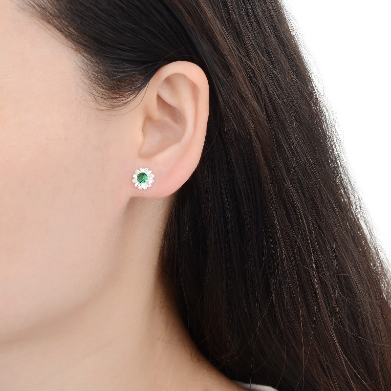 Aretes Flor Verde – Plata