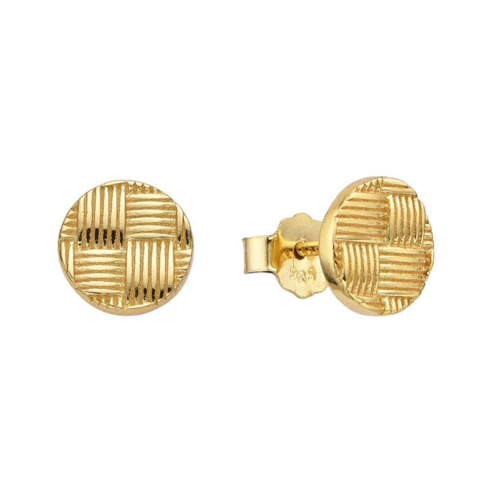 Aretes redondos Trama Dorados en plata, con un diseño elegante y textura delicada que aporta brillo y sofisticación. Perfectos para realzar cualquier look, desde el día a día hasta ocasiones especiales.