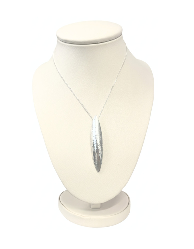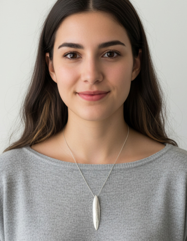 Elegante dije alargado en plata 950 con acabado texturizado que resalta su diseño único y moderno. Perfecto para quienes buscan un accesorio distintivo y versátil, para cualquier ocasión:
