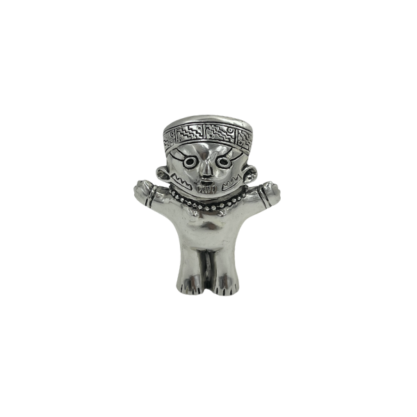La Cuchimilca es una impresionante pieza de arte que fusiona la tradición arqueológica con la elegancia del plaque. Inspirado en las antiguas figurillas precolombinas de la cultura Chancay. Esta figura está meticulosamente elaborado en plaque, un material que combina la apariencia del metal con la ligereza y accesibilidad del aluminio.