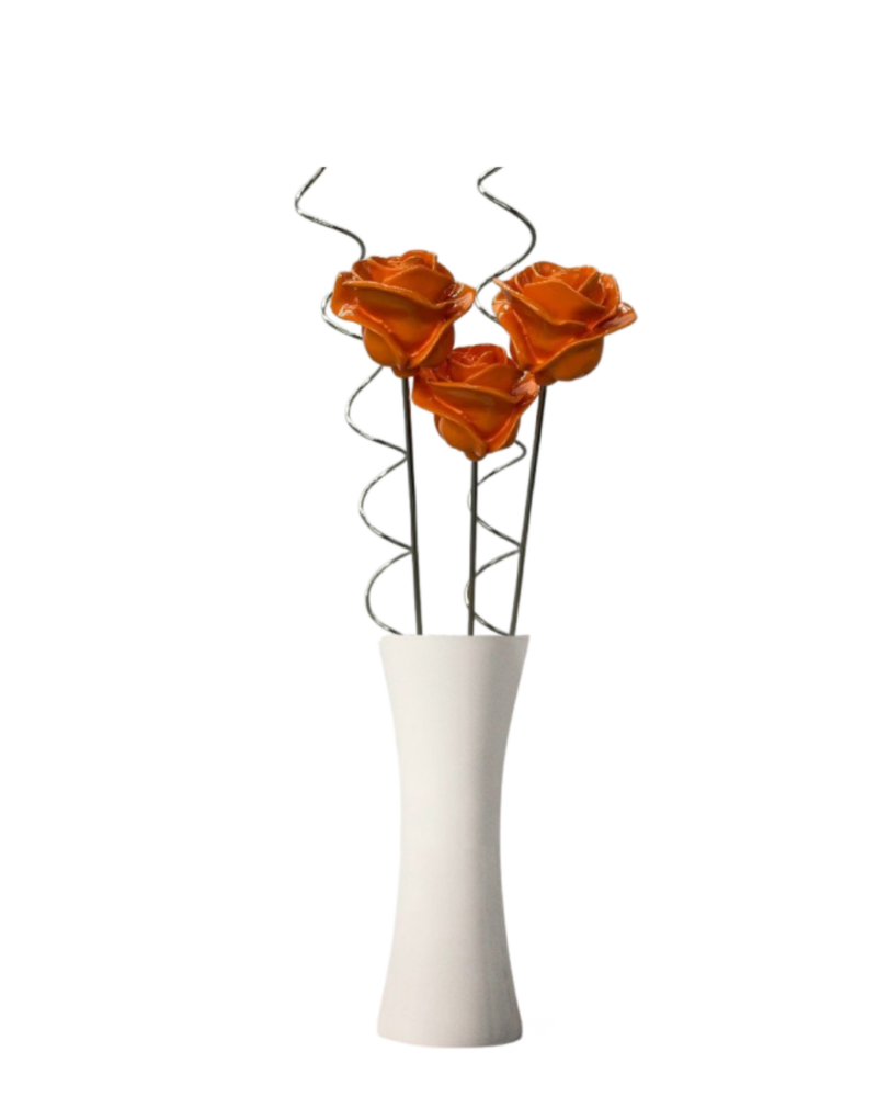 Ramo de 3 rosas anaranjados con rizos para cualquier ocasión o para añadir un toque elegante a tu decoración. No requiere cuidados especiales y siempre luce fresco.