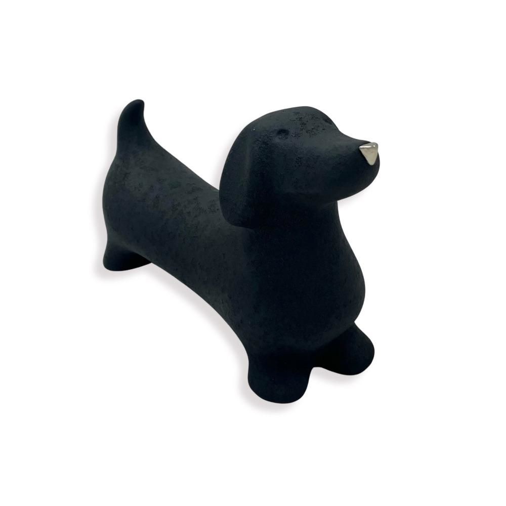 Escultura de perro en cerámica con diseño moderno y minimalista. Su acabado elegante en color blanco grisáceo la hace perfecta para complementar cualquier espacio, añadiendo un toque sofisticado a la decoración. Ideal como regalo o elemento de estilo en interiores.