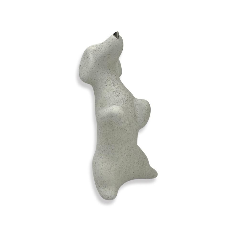 Escultura de perro en cerámica con diseño moderno y minimalista. Su acabado elegante en color blanco grisáceo la hace perfecta para complementar cualquier espacio, añadiendo un toque sofisticado a la decoración. Ideal como regalo o elemento de estilo en interiores.