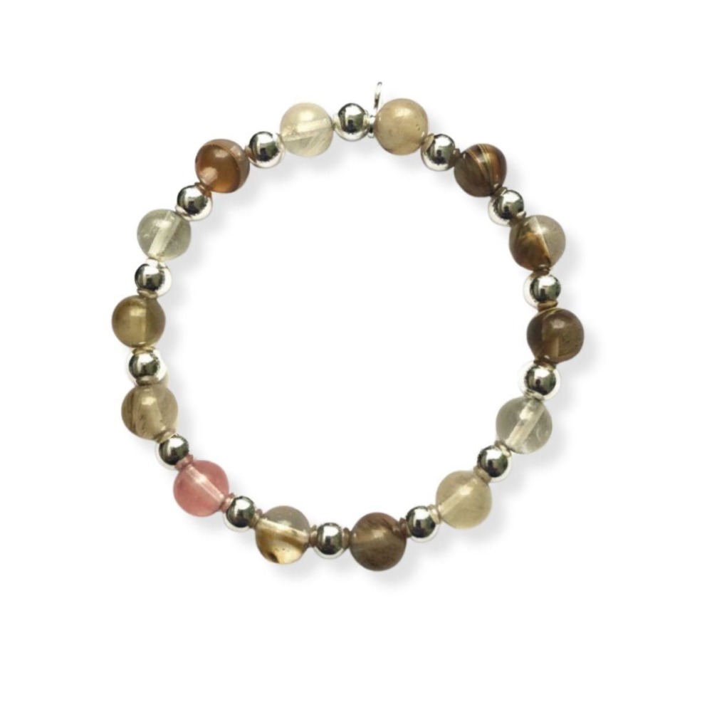 Pulsera de ágata cherry con bolas de plata 925, un diseño delicado y femenino ideal para realzar cualquier look. El ágata cherry es conocida por estimular la energía positiva, la motivación y el equilibrio emocional, aportando vitalidad y bienestar a quien la lleva.