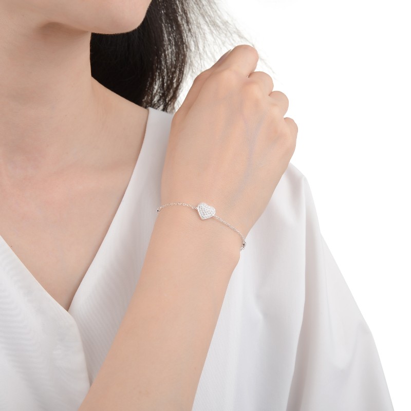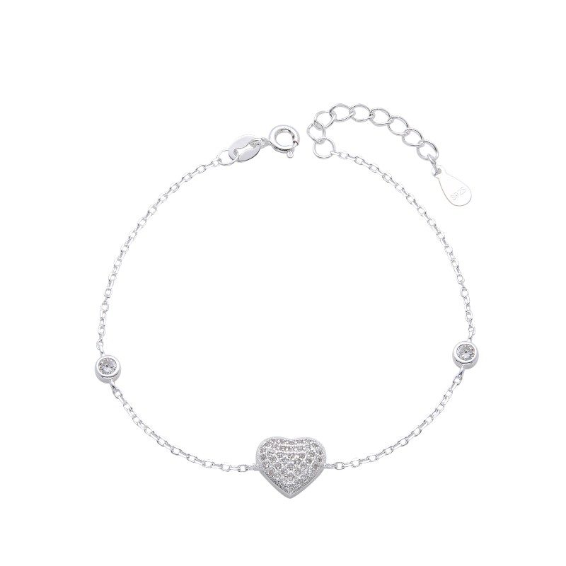 Romántica y elegante, esta pulsera con dijes de corazón y pequeños puntos de luz en plata y circones que refleja amor y brillo en cada detalle. Su diseño delicado la hace perfecta para cualquier ocasión.