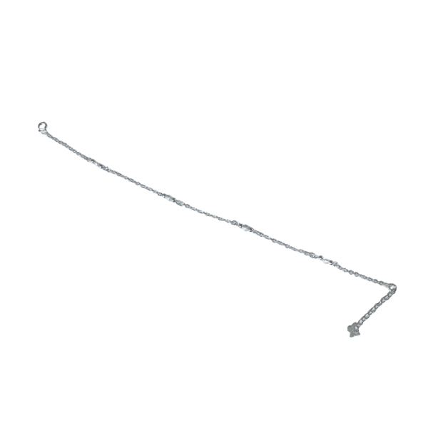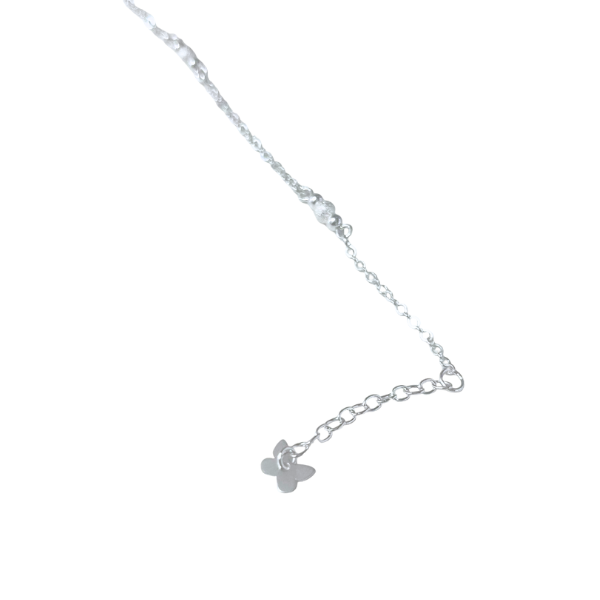 Tobillera de plata fina con bolas de damante y un dijes de mariposas. Diseño casual y delicado, ideal para looks femeninos.